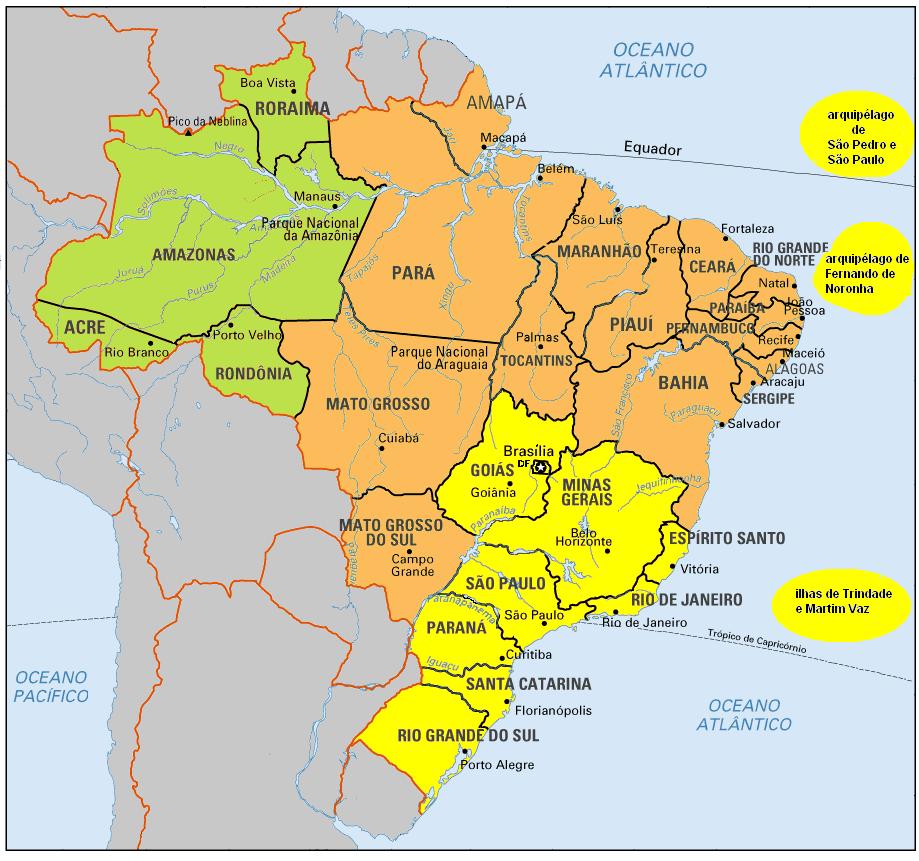 Mapa do equador com principais cidades. As regiões brasileiras constituem agrupamentos de estados ou unidades federativas com características semelhantes a fim de facilitar a análise e a interpretação de dados. O brasil é o maior país da américa do sul (quase metade do continente), e o quinto do mundo. Vários lugares no equador foram declarados patrimônio da humanidade pela unesco, incluindo as ilhas galápagos e as cidades de quito e cuenca, que se encontram nos andes, que correm de norte a sul.